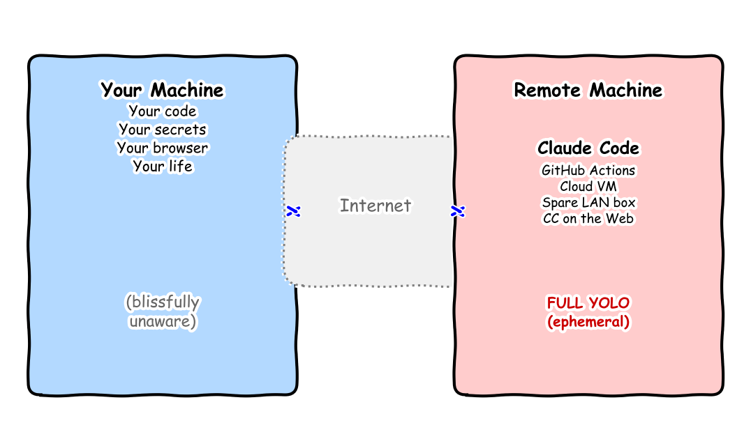 Use remote execution (GitHub Actions, CC on the web) when you want the agent completely off your machine. Perfect for CI/CD automation or when working on sensitive codebases. The tradeoff is latency, less interactivity, and dependence on external infrastructure.